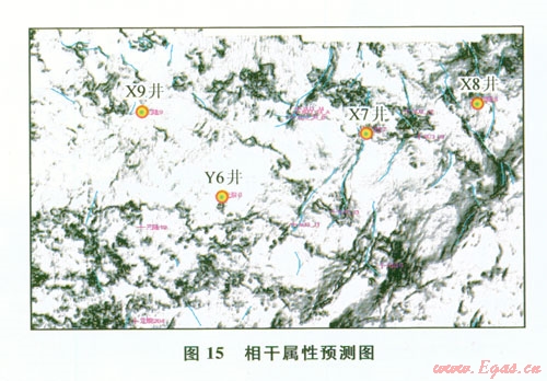 由于須三段儲(chǔ)層的重點(diǎn)勘探目標(biāo)“網(wǎng)狀裂縫”通常具有“雜亂反射”地震響應(yīng)特征,因此,可以利用多種反映地震子波橫向不穩(wěn)定性的地震屬性進(jìn)行裂縫預(yù)測(cè)(圖15、16)。
