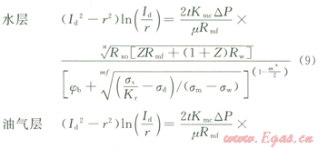 1) 鉆井液濾液侵入水層。假設(shè)鉆井液濾液均勻侵入水層,而它與地層水之間沒有傳質(zhì)現(xiàn)象。其侵入深度可用下式表示: