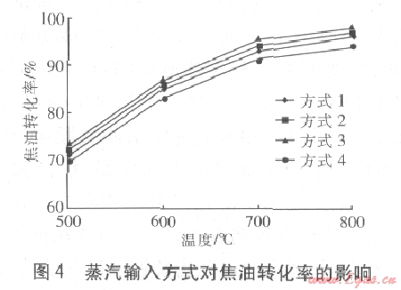 蒸汽輸入方式對焦油轉(zhuǎn)化率的影響