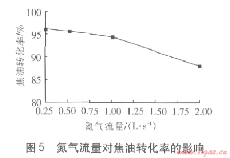 氮氣流量對焦油轉(zhuǎn)化率的影響