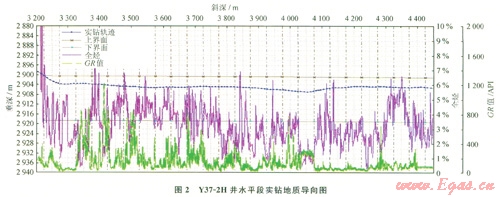 Y37-2H井應(yīng)用的哈里伯頓公司FEWD隨鉆地質(zhì)導(dǎo)向儀器能夠隨鉆實(shí)時(shí)測量傳輸2條伽馬曲線和特淺、淺、中、深4條電阻率曲線,為現(xiàn)場地質(zhì)導(dǎo)向提供隨鉆地質(zhì)參數(shù)[4]。