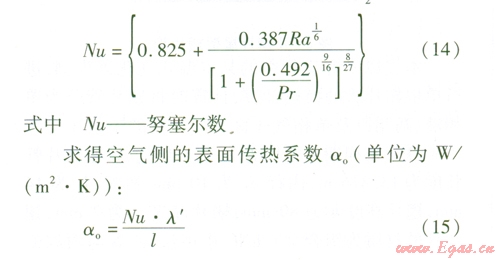 空氣側換熱可看作大空間自然對流換熱,單個翅片的換熱可以看作空氣與等截面直肋的換熱。