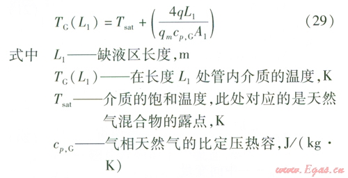 由于在兩相區(qū)熱流密度變化不大,所以在缺液區(qū)取與流動沸騰區(qū)相同的熱流密度值和管內流體表面?zhèn)鳠嵯禂抵怠H币簠^(qū)管內流體的溫度計算公式為: