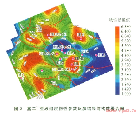 嘉二2亞段儲(chǔ)層發(fā)育特征受多方面因素的控制,利用單一儲(chǔ)層地震預(yù)測方法難以精確全面預(yù)測儲(chǔ)層發(fā)育特征,需對(duì)嘉二2亞段構(gòu)造和局限臺(tái)地灘相儲(chǔ)層沉積特征分析的基礎(chǔ)之上,結(jié)合地震屬性、巖性反演和多參數(shù)儲(chǔ)層綜合預(yù)測結(jié)果,對(duì)儲(chǔ)層物性特征和裂縫發(fā)育程度進(jìn)行綜合預(yù)測。