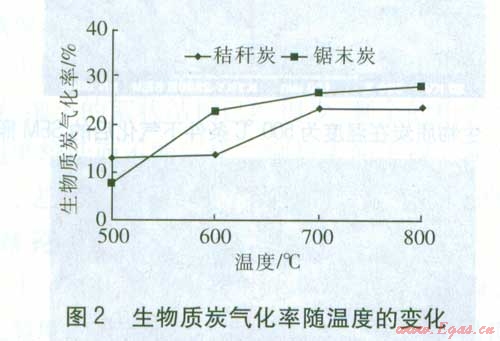 溫度對生物質(zhì)炭氣化率的影響