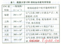 ×104 m3/d,可為冷庫(kù)供提供一35~一45℃液氨800~1 600 kg/h[5]。表l列出了國(guó)內(nèi)主要LNG接收站規(guī)劃或建設(shè)中的冷能利用項(xiàng)目[6]。