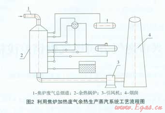 “利用焦?fàn)t加熱廢氣余熱生產(chǎn)蒸汽系統(tǒng)”工藝流程見圖2。