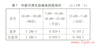 燃?xì)鈨r格按照2.4 元/m3計算,中新天津生態(tài)城各時段電價見表l。此外,燃?xì)廨啓C(jī)部分負(fù)荷率下降到0.5以下時熱效率下降嚴(yán)重,因此將燃?xì)廨啓C(jī)部分負(fù)荷率≥0.5作為約束條件。將以上參數(shù)輸入到優(yōu)化評價模型就可得到聯(lián)供系統(tǒng)的最優(yōu)設(shè)備配置和運(yùn)行策略。