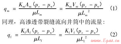 高滲透帶基質流向井筒中的流量,由達西定律: