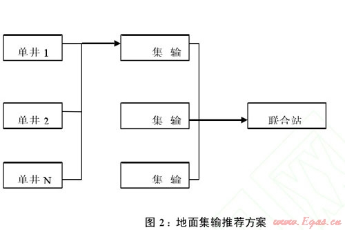針對非常規(guī)天然氣資源分布散、地層壓力低、穩(wěn)產(chǎn)時間短、高含水等特點(diǎn),國內(nèi)非常規(guī)天然氣開發(fā)方案地面工程設(shè)計(jì),普遍采用地面不加熱、低壓集氣、混相計(jì)量等技術(shù),如圖 2所示。凈化氣外輸大多采用鋪設(shè)長輸管道輸送、低溫常壓液化槽車運(yùn)輸?shù)刃问?。長輸管道輸送凈化氣要滿足 GB17820-1999《天然氣》產(chǎn)品標(biāo)準(zhǔn),天然氣液化凈化氣中 H2O、CO2和 H2S 含量分別應(yīng)該控制在1ppm(v)、50ppm(v)和4ppm(v)。