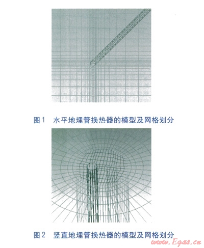 采用ANSYS ICEM CFD進(jìn)行建模,模型建立時(shí),不對模型進(jìn)行簡化,完全根據(jù)實(shí)際情況進(jìn)行建模。采用ANSYS CFX進(jìn)行求解,選擇非穩(wěn)態(tài)計(jì)算,管內(nèi)傳熱介質(zhì)流動(dòng)選擇K-Epsilon模型,動(dòng)量方程與能量方程耦合求解。水平地埋管換熱器布置成直管形式,地埋管長度為l00m。由于豎直地埋管換熱器的研究基于線熱源,因此將豎直地埋管換熱器的鉆孔深度設(shè)定為l
