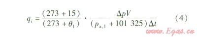 GB 27790-201l在第6.5.5.1款中對(duì)調(diào)壓器型式檢驗(yàn)內(nèi)密封試驗(yàn)的試驗(yàn)方法進(jìn)行了修訂,采用壓降法作為調(diào)壓器內(nèi)密封性能檢驗(yàn)的試驗(yàn)方法:在調(diào)壓器最大進(jìn)口壓力條件下進(jìn)行靜特性試驗(yàn)時(shí),在調(diào)壓器關(guān)閉5 min后測(cè)量?jī)纱纬隹趬毫?。要求兩次測(cè)量的時(shí)間間隔和壓力測(cè)試結(jié)果符合本文第2.2.2①中對(duì)壓降法的規(guī)定。不過(guò)在計(jì)算總體泄漏量的過(guò)程中,計(jì)算公式中的物理量含義有所改變:式(3)中的pm,1pm,2表示5 min和足夠長(zhǎng)時(shí)間間隔后調(diào)壓器的關(guān)閉壓力值;式(4)中的V表示從調(diào)壓器的閥口到流量調(diào)節(jié)閥之間的試驗(yàn)管路容積。