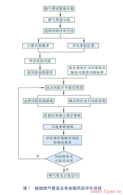 城鎮(zhèn)燃?xì)夤艿廊珘勖诎ü艿赖脑O(shè)計(jì)階段、施工及驗(yàn)收階段以及運(yùn)行維護(hù)階段。城鎮(zhèn)燃?xì)夤艿廊珘勖陲L(fēng)險(xiǎn)評(píng)價(jià)就是在城鎮(zhèn)燃?xì)夤艿廊珘勖谶^(guò)程中,最大限度地考慮各個(gè)階段可能產(chǎn)生的風(fēng)險(xiǎn)以及正在變化的風(fēng)險(xiǎn),對(duì)這些風(fēng)險(xiǎn)進(jìn)行評(píng)價(jià),并從城鎮(zhèn)燃?xì)夤艿赖陌踩?、?jīng)濟(jì)性、環(huán)保性、運(yùn)行效率等各個(gè)指標(biāo)綜合考慮來(lái)確定高風(fēng)險(xiǎn)管段以及如何控制和降低高風(fēng)險(xiǎn)至可接受范圍[6-8]