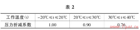 1.2.3 聚乙烯燃?xì)夤艿赖墓ぷ鳒囟瘸^(guò)20℃時(shí),還需要考慮管道燃?xì)馍邔?duì)于其自身承受能力的影響,也就是說(shuō),溫度的勝過(guò)對(duì)造成其允許的最大工作壓力值受到影響而降低,具體的降低系數(shù)如表2