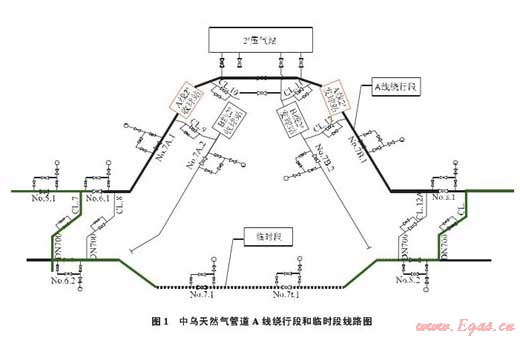 A線繞行段是改變原有中烏天然氣管道設(shè)計線路向西繞行至烏茲別克斯坦加茲里氣田區(qū)的一項關(guān)鍵性工程,如果不采取非常措施,按期實現(xiàn)中烏天然氣管道A線單線投產(chǎn)通氣難度極大。為此,采用了通過臨時段管道連通A線管道先實現(xiàn)投產(chǎn),待A線繞行段具備投產(chǎn)條件后,再將其與A線管道連通,最終實現(xiàn)A線管道投產(chǎn)、臨時段管道停用的總體方案。
