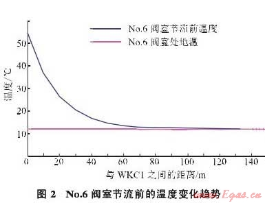 由于距離較遠,輸量較小,管內(nèi)的氣體流速僅為0.700.75m/s,導(dǎo)致No.6閥室處管道內(nèi)天然氣節(jié)流前的溫度與地溫基本相同。