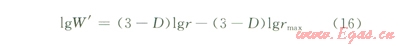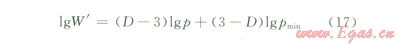 利用泡壓法分別測試潤濕條件和非潤濕條件下不同壓差時(shí)的流量數(shù)據(jù),根據(jù)上述公式計(jì)算不同直徑連通喉道對(duì)滲流能力的比率W',將lg W'與lgr或者lgp作圖,結(jié)合公式(16)和公式(17),通過線性回歸得出斜率,即可得出分形維數(shù)(D)。