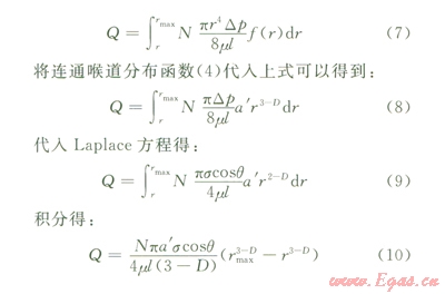式中f(f)為連通喉道分布函數(shù),將公式(6)代入公式(5)得: