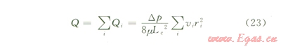 根據(jù)Hagen-poiseuille定律,在壓差Δp作用下,黏度為μ的流體流過毛細(xì)管束總流量應(yīng)為: