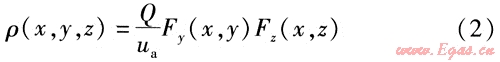 式中ρ(x,y,z)——下風(fēng)向空間任意一點的質(zhì)量濃度,mg/m3