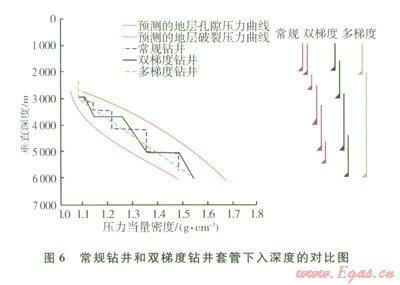 與常規(guī)鉆井和雙梯度鉆井方法相比,采用多梯度鉆井能更好地匹配地層孔隙壓力和破裂壓力窗口,有效控制井筒環(huán)空壓力在地層壓力窗口中變化,使井底壓力在較長的井段內(nèi)介于地層壓力和破裂壓力之間,實現(xiàn)“移動的海底”概念,能夠簡化深水井復(fù)雜井身結(jié)構(gòu),有效地減少深水鉆井存在的問題,實現(xiàn)安全鉆進(jìn)。