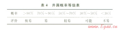 根據(jù)計(jì)算出的概率并參照表4,可以判斷發(fā)生井漏的程度。