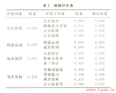 其中,巖石性質(zhì)包括巖石組分、巖石結(jié)構(gòu)、巖石強(qiáng)度,是最基礎(chǔ)的參數(shù)。地質(zhì)構(gòu)造因素分為構(gòu)造運(yùn)動(dòng)及后期的成巖作用;地震屬性選取對井漏漏失通道檢測較敏感的反射特征、振幅變化率、相干特性;鄰井資料包括已發(fā)生漏失井的井漏狀況、供液能力及測井資料(漏失井測井資料上反應(yīng)的參數(shù)),屬于評判系統(tǒng)的低層次指標(biāo)。