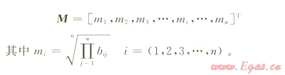 1)先計(jì)算判斷矩陣中每行所有元素的幾何平均值,得向量: