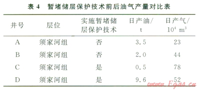針對(duì)研究的四川油氣田某區(qū)塊須家河組儲(chǔ)層,須家河組儲(chǔ)層段中的2口開(kāi)發(fā)井實(shí)施多級(jí)架橋暫堵儲(chǔ)層保護(hù)技術(shù)前后的油氣產(chǎn)量對(duì)比(4)。實(shí)施多級(jí)架橋暫堵儲(chǔ)層技術(shù)的2口開(kāi)發(fā)井,其油氣產(chǎn)量得到明顯提高,充分說(shuō)明多級(jí)架橋暫堵技術(shù)對(duì)值層具有良好的保護(hù)作用。