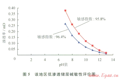 1)儲(chǔ)層巖心具有較強(qiáng)的水鎖、水敏和堿敏損害特征:根據(jù)對(duì)該地區(qū)低滲透儲(chǔ)層段含水飽和度的統(tǒng)計(jì),其儲(chǔ)層段含水飽和度平均為64.81%,對(duì)照實(shí)驗(yàn)結(jié)果,儲(chǔ)層段受到中等偏強(qiáng)水鎖損害(1)。儲(chǔ)層段巖心水敏性實(shí)驗(yàn)表明,滲透率分別由0.3485mD降至0.0572mD、由0.1750mD降至0.0292mD,巖心的敏感指數(shù)分別為83.6%和83.3%,說(shuō)明該地區(qū)低滲透儲(chǔ)層段具有強(qiáng)水敏性(4)。儲(chǔ)層段巖心堿敏評(píng)價(jià)實(shí)驗(yàn)結(jié)果表明,當(dāng)pH值由7升至l3時(shí),巖心滲透率分別南0.3762mD降至0.0158mD、由0.2639mD降至0.0095mD,巖心的堿敏感指數(shù)分別為95.8%和96.4%,該地區(qū)低滲透儲(chǔ)層具有強(qiáng)的堿敏性(5)
