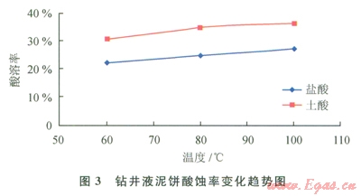利用酸與巖屑及鉆井液中酸溶性成分反應(yīng)生成可溶性鹽類的原理,用適當(dāng)濃度的酸液溶蝕卡住鉆具的巖屑或泥餅,達(dá)到解卡的目的。圖1、2、3分別是巖屑、鉆井液泥餅的酸溶評價(jià)實(shí)驗(yàn)。