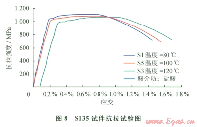 根據(jù)元壩地區(qū)鉆井工程的實(shí)際情況,實(shí)驗(yàn)選用了,S135鋼片、Gl05鋼片作為評價(jià)對象。一定溫度情況下評價(jià)Sl35鋼片、Gl05鋼片在酸化解卡液中腐蝕后強(qiáng)度(抗拉與抗扭)變化情況[12]。