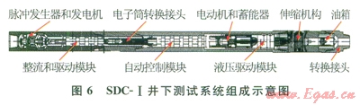 它由渦輪發(fā)電機(jī)模塊、電氣短節(jié)、鉆井液分流器、增壓裝置、執(zhí)行機(jī)構(gòu)總成、執(zhí)行機(jī)構(gòu)液壓控制系統(tǒng)、抽吸系統(tǒng)、探測頭、下接頭等主要部件組成。它是基于鉆井液分流提供液壓動力,三點(diǎn)定位井壁保證合適推靠力,以鉆井液脈沖作為下傳信號的測試啟動控制系統(tǒng)(5)
