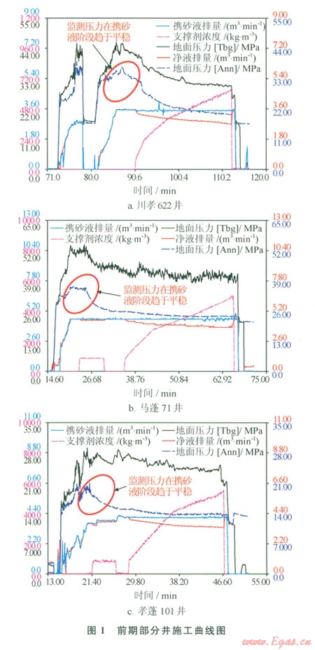 2)防水鎖壓裂液、小排量起裂、段塞優(yōu)化技術(shù),配套纖維網(wǎng)絡(luò)加砂、液氮全程伴注及強(qiáng)制裂縫閉合高效返排工藝,有效解決了什邡氣田加砂壓裂過(guò)程中存在的監(jiān)測(cè)壓力波動(dòng)大、增產(chǎn)效果差等問題。
