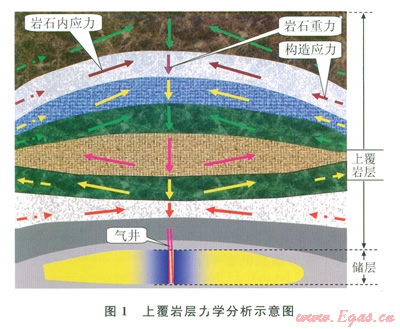 如果研究的對(duì)象是流體,或者研究區(qū)域無(wú)窮大,這個(gè)結(jié)論是對(duì)的。而實(shí)際研究的對(duì)象是具有抗彎、抗剪能力的巖石,上覆各巖層都受到相互約束力的作用,并且氣井在生產(chǎn)過(guò)程中壓降漏斗是有限的,即上覆壓力是作用在限壓力降區(qū)域,因此,上覆巖石的自身重力可以被巖石的內(nèi)應(yīng)力相互抵消一部分(圖1)。