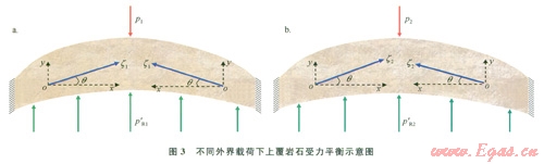 根據(jù)圖3,巖石所受載荷P1、P2存在關(guān)系式: