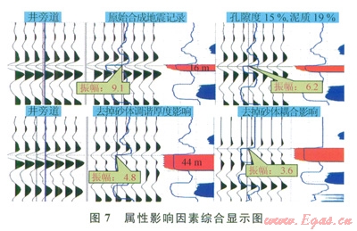 影響本區(qū)儲層振幅異常的因素可分為兩大類。一為儲層外部因素:淺層氣吸收衰減、泥巖蓋層、相鄰砂體耦合效應。二為儲層自身因素:儲層自身物性、厚度及含水飽和度。屬性剝離技術(shù)的方法及思路為:首先找到每個儲層的外部影響因素,進行定量或半定量分析后,找到相關(guān)解決方案,剔除非儲層因素造成的振幅假象、還原相應厚度及物性下真實地層反射;然后根據(jù)得到的振幅信息定量分析儲層為何種物性及厚度;最終進行有利儲層預測、含氣面積圈定和儲量計算。