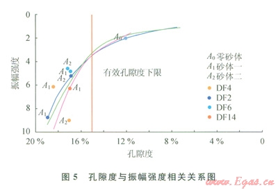 研究結(jié)果顯示(5),泥質(zhì)含量增加后,總孔隙度隨之降低,巖石速度及密度也應該隨之增加。即當儲層物性變差,儲層反射強度降低。如圖5所示,多口井測井曲線擬合趨勢基本相同。將各井實鉆儲層頂面振幅其他因素的影響剔除后,實鉆振幅值與正演模擬趨勢基本吻合。證明該規(guī)律可以代表真實物性變化條件下的地震反射變化情況。同時,該研究結(jié)果可以將地震振幅大小與物性下限(15)相對應,當不受調(diào)諧及其他因素影響的時候,真實氣層頂面反射振幅在3.5左右。所以對振幅強度低于3.5的區(qū)域在儲量計算時基于風險考慮,儲量級別相應降低。