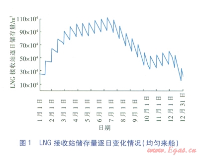 摘 要:基于某地區(qū)天然氣供氣及用氣特性采用動(dòng)態(tài)分析的方法分析LNG接收站儲(chǔ)存規(guī)模、LNG接收站每月庫(kù)存變化情況及趨勢(shì)、上游LNG船次。調(diào)整船期,在保證下游季節(jié)調(diào)峰要求的前