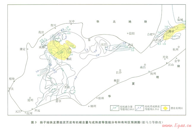 2)綜合分析以上要素后認(rèn)為,龍?zhí)督M頁巖氣成藏條件縱向上看:中、上段優(yōu)于下段,橫向上頁巖氣的有利地區(qū)為上揚(yáng)子川中、川東、渝西北和下?lián)P子蘇南地區(qū)。
