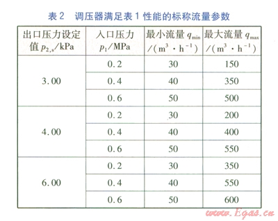 根據(jù)GB 27790-2011《城鎮(zhèn)燃?xì)庹{(diào)壓器》(以下簡稱GB 27790-2011)的規(guī)定,城鎮(zhèn)燃?xì)庹{(diào)壓器靜態(tài)特陛的合格與否需要通過靜態(tài)特性實(shí)驗(yàn)并根據(jù)實(shí)驗(yàn)數(shù)據(jù)繪制靜態(tài)特性曲線圖來判定。對某一型號(hào)的城鎮(zhèn)燃?xì)庹{(diào)壓器(標(biāo)稱參數(shù)見表l、2)進(jìn)行靜態(tài)特性實(shí)驗(yàn),并按照GB 27790-2011第
