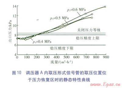 ②內(nèi)取壓位置對調(diào)壓器靜態(tài)特性的影響