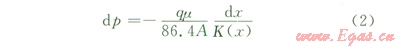 式中p為地層壓力,MPa;μ為流體黏度,mPa·sA為滲流截面積,m2;Ks (x)為污染區(qū)的滲透率,D