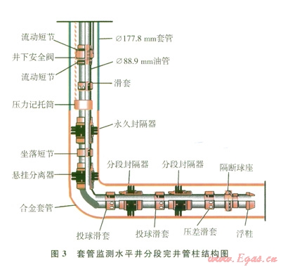 套管完井水平井,采用一趟下入完井管柱,管柱結(jié)構(gòu)見圖l。