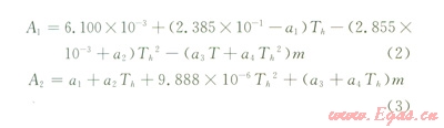 式中Th表示均一溫度,℃;m表示鹽類質量摩爾濃度,mol/kg,它與鹽度(叫)的換算公式為:m=1 000ω/[58.5×(100-ω)];al、a2、a3、a4為常數(shù),對于CaCl2-H20體系來說,al=2.848×101,a2=-6.445×10-2:a3=-4.159×10-1、a4=7.438×10-3。