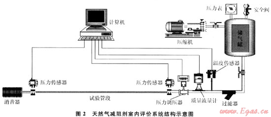 由于目前國內(nèi)天然氣減阻劑的研究尚處于實(shí)驗(yàn)階段,還沒有建立起天然氣減阻劑減阻性能評價標(biāo)準(zhǔn)。參照現(xiàn)有“原油減阻劑減阻性能評價系統(tǒng)”,與中國石油管道科技研究中心合作設(shè)計制作了國內(nèi)首個天然氣減阻劑室內(nèi)評價系統(tǒng),其結(jié)構(gòu)示意圖如圖2所示[6]。