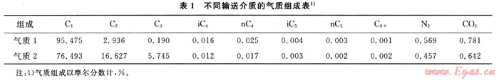 為了驗(yàn)證該減壓波模型的正確性,開(kāi)發(fā)了相應(yīng)的計(jì)算程序Decomwave。將Decomwave計(jì)算的結(jié)果與本文參考文獻(xiàn)[6]中的實(shí)驗(yàn)數(shù)據(jù)進(jìn)行比較分析,以驗(yàn)證模型的準(zhǔn)確性。由于篇幅限制,在此僅給出2組不同氣質(zhì)的驗(yàn)證結(jié)果,其氣質(zhì)組成如表1所示。