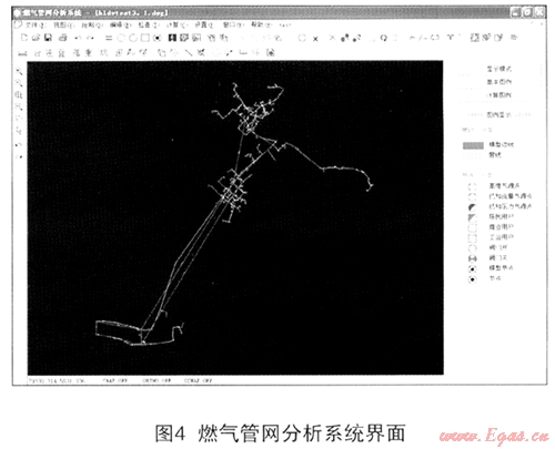 燃氣管網(wǎng)分析系統(tǒng)是采用AutoCAD控件組態(tài)成人機交互平臺,在圖形操作上更加方便、靈活。其主要功能如下: