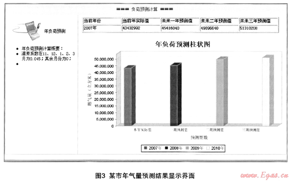 城市燃氣管網(wǎng)建設項目立項之前,需要進行燃氣用氣量預測分析,如果沒有用戶,沒有燃氣使用需求,那么投資建設的管線項目投資收益率低,從某種程度上講,投資時間過早或不宜,投資決策失誤。應用氣量預測系統(tǒng)中的年用氣量預測功能模塊對城市燃氣未來3年用氣量進行預測,可以對燃氣氣量未來發(fā)展有進一步的認識,從而為項目投資決策提供重要依據(jù)。