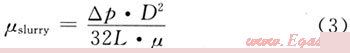 式中△p為壓降,Pa;L為實(shí)驗(yàn)段長(zhǎng)度,m;μslurry為天然氣水合物漿液黏度,Pa·s;u為流速,m/s;D為管徑,